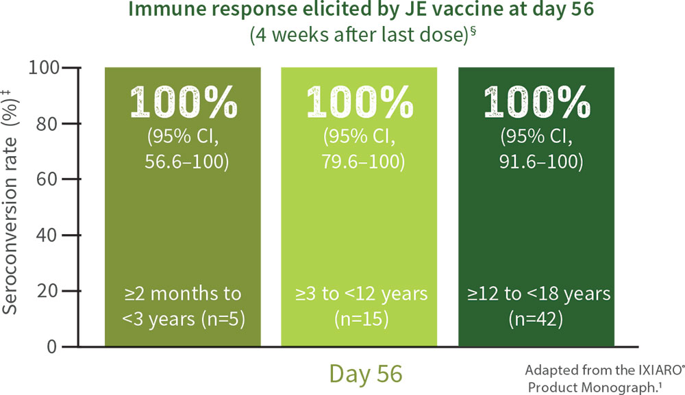 All pediatric subjects achieved SCR‡ rates of 100% with IXIARO® at day 56